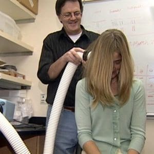 Around this time, Dr. Clayton’s elementary school children contracted head lice that appeared to be resistant to chemical shampoos. Dr. Clayton’s experience with pigeon lice suggested it might be possible to control head lice by reducing the level of humidity near the scalp. Over the next several years a variety of methods were tested in Dr. Clayton’s lab, ranging from the use of chemical desiccants to heat caps fitted with electrodes, to rice bag caps heated in a microwave, to various hairdryers and blowers up to the size of a leaf blower (don’t try this at home).