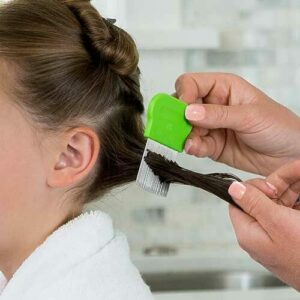 The premium metal lice comb is used to remove the dead lice and eggs from the hair. Each section of hair is combed multiple times as needed, and from different directions, to ensure that no dead lice or eggs are missed.